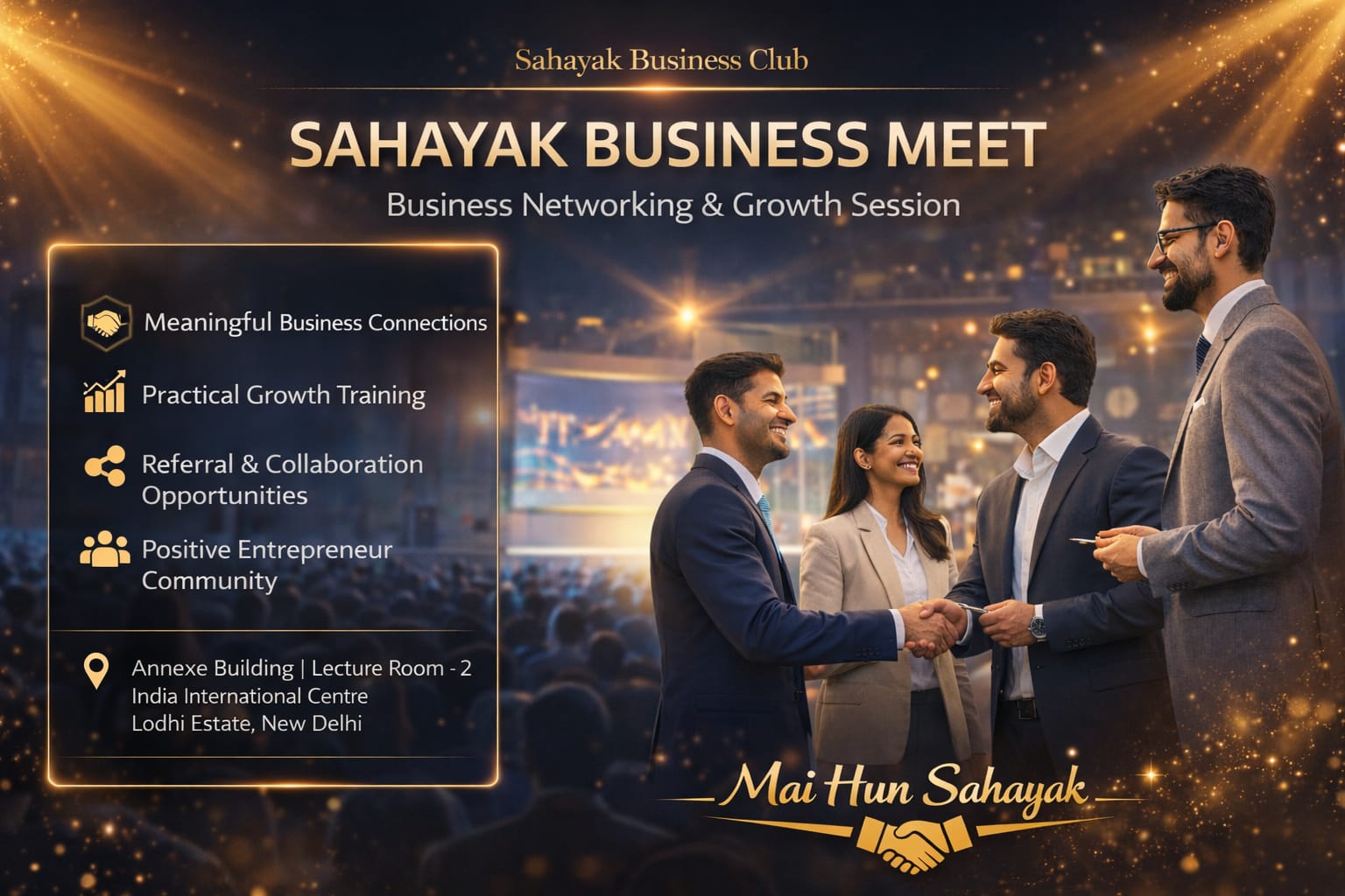 Join the Sahayak Business Meet on 7th February 2026, where 55 dynamic entrepreneurs and professionals unite to network, collaborate, and grow together. This exclusive gathering is designed to spark meaningful conversations, build strong relationships, and unlock new business opportunities. Discover how the right connections can transform ideas into powerful collaborations and drive real business growth. Expand your circle, share insights, and experience how a strong network truly builds your net worth.